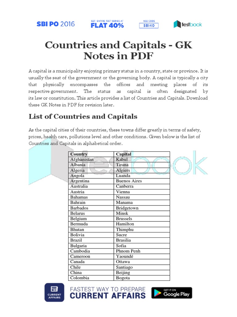 List Of Countries And Their Capitals Cities Download Free Pdf Here