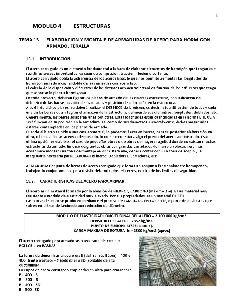 Tema 15 Elaboracion Y Montaje De Armaduras Para Hormigon Armado