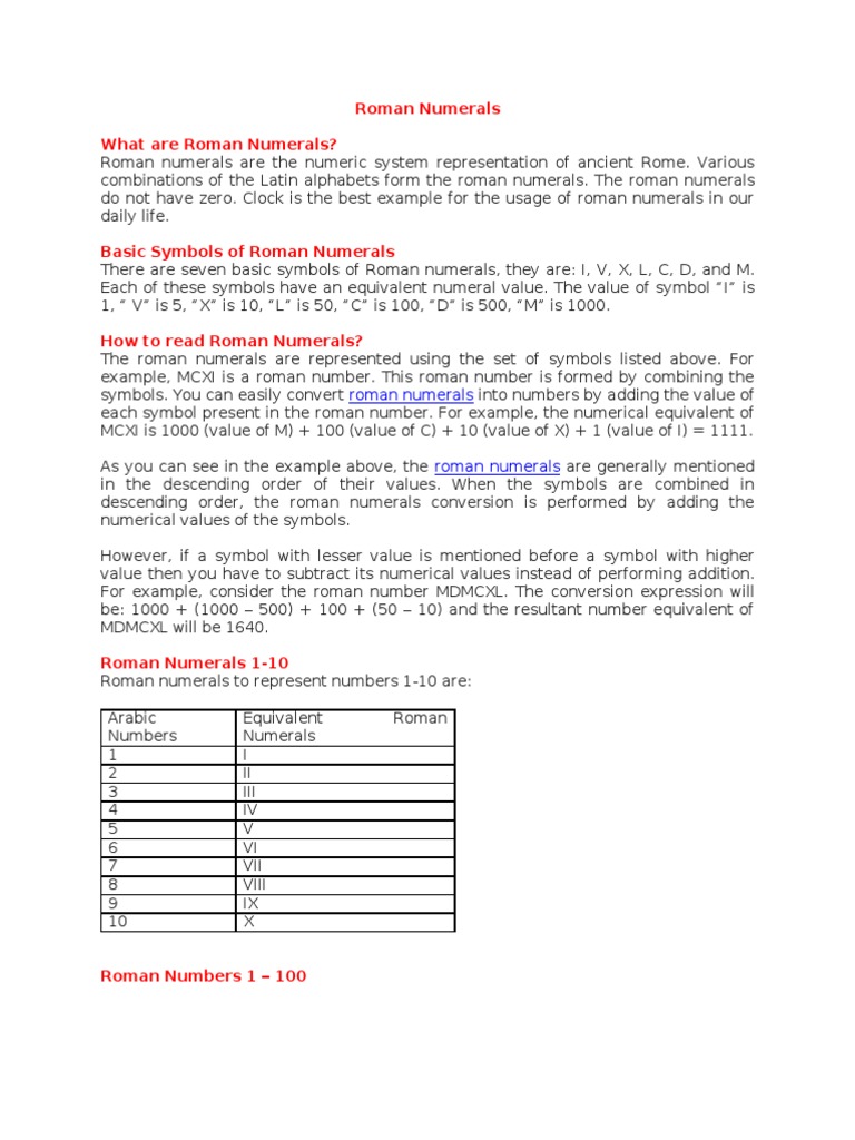 Roman Numerals 1 10 Worksheets Printable Worksheets And Activities For Teachers Parents Tutors And Homeschool Families