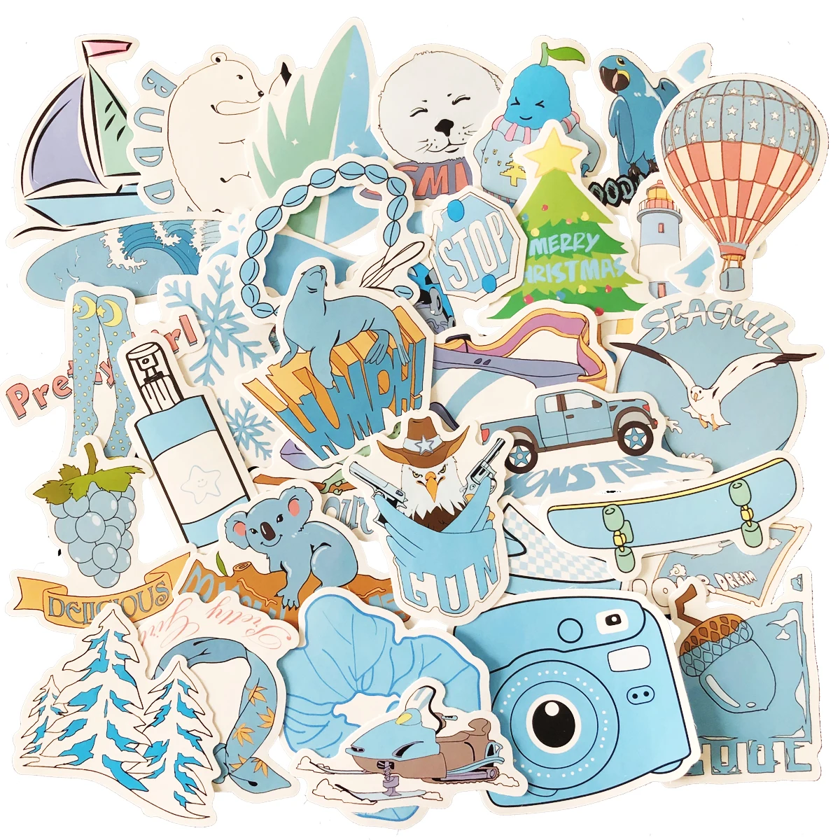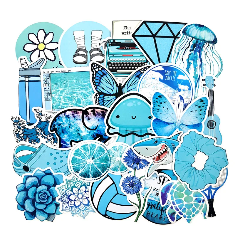 50pcs Blue Skateboard Stickers Vinyl Laptop Luggage Decals
