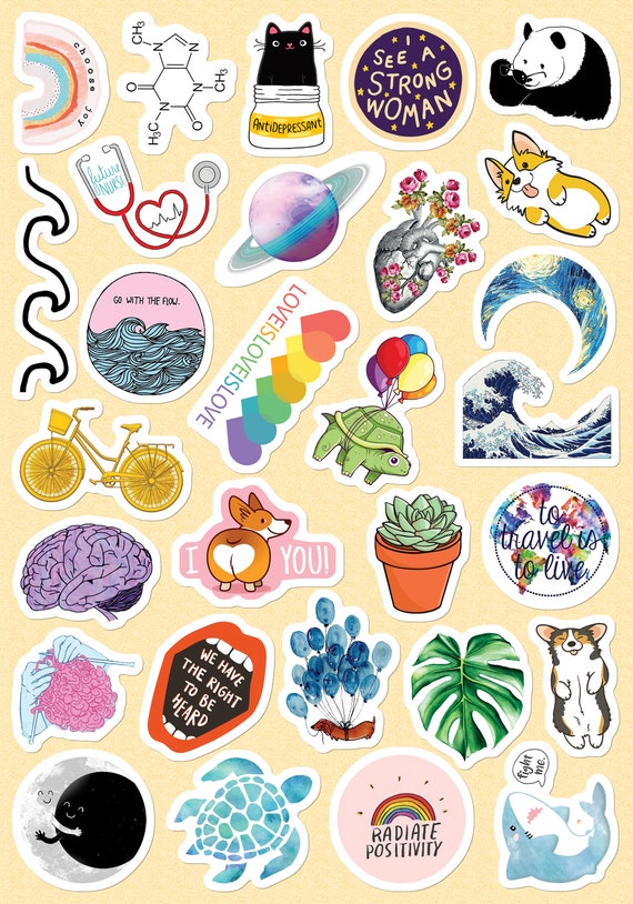 Small Large Stickers Light Pink Blue Yellow Vsco Girls Etsy